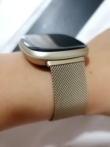 "¡Wow! Esta correa transformó totalmente mi Versa. El cierre magnético es súper seguro, incluso durante los entrenamientos. Además, se ve muy elegante y estilosa, así que no me da vergüenza usarla en cenas elegantes. La recomiendo totalmente a cualquiera que busque mejorar la correa de su Fitbit."